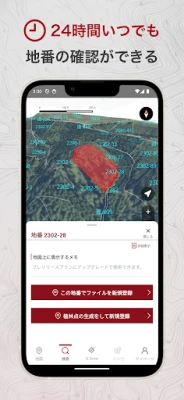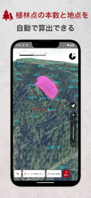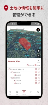 Groundyは、独自の機能で土地管理の新たな標準を確立します。特筆すべきは、地番情報をフォルダやファイルとして体系的に整理できる「Groundy Drive」機能。これにより、地番情報や自身で作成した地図にメモや写真を紐づけ、まるでデジタルキャビネットのように情報を一元管理できます。また、特許出願中の「苗の必要本数と植林地点自動生成機能」は、林業従事者の作業を劇的に効率化。地番ごとに植林地点を自動で算出し、苗の半径2mに基づく正確な本数を事前に把握。各地点の緯度経度情報により、植林や下刈り作業時のピンポイントな位置特定を実現し、無駄のないスマートな作業をサポートします。