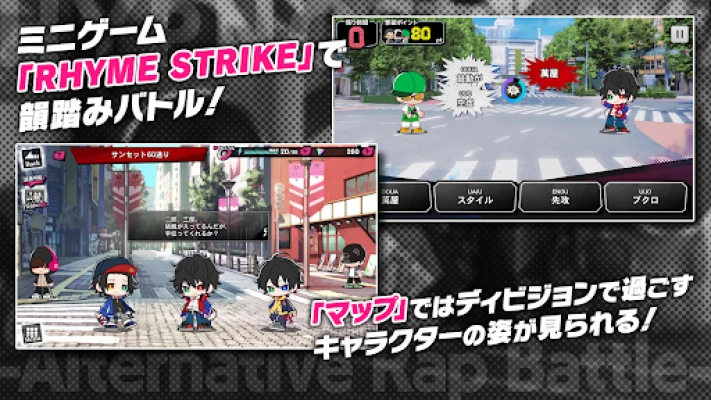 また、お気に入りのキャラクターと共に「RHYME STRIKE」に挑戦し、敵と韻を踏みながらポイントを獲得し、豪華なアイテムを手に入れるミニゲームも楽しめます。ディビジョンの「ランドマーク」を巡るマップ機能では、各地で過ごすキャラクターたちの日常を垣間見たり、「フィールドワーク」を通じて調査報酬を得たりと、広大な「ヒプノシスマイク -A.R.B-」の世界を深く探索できます。物語を彩る木村 昴氏、浅沼晋太郎氏、速水 奨氏をはじめとする豪華声優陣による迫力満点のボイスが、あなたの冒険を最高の形で演出します。
