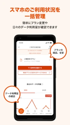 my auがあれば、データ利用状況の管理はかつてないほど直感的です。現在のギガ残量はもちろん、過去30日間や半年間の利用履歴も詳細なグラフで確認でき、賢いデータプランの選択をサポートします。また、ご請求額とその内訳、さらには過去6ヶ月間の推移も一目瞭然。料金プランやオプションサービスの変更、お引越し時の住所更新といった契約情報の見直しもアプリ内で完結し、auサービスをより自由に、安心してご利用いただけます。