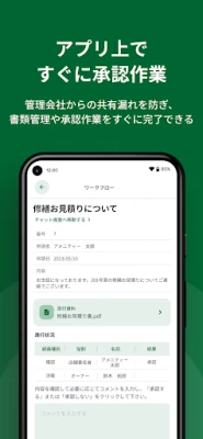 さらに、大切な書類の管理も抜かりありません。ジェイエーアメニティーハウスから届く各種明細書、見積書、報告書などは、メッセージに添付されると同時に自動的に物件ごと、書類の種別ごとに分類・整理されます。これにより、必要な情報を瞬時に見つけ出し、内容を容易に確認することが可能です。複雑な物件管理をシンプルにし、オーナー様の貴重な時間を創出するこのアプリが、皆様の不動産経営を強力に後押しします。